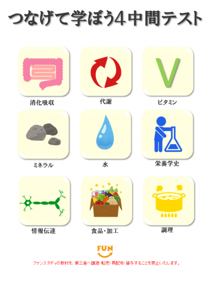 ファンスタディのテキストは、つなげて学ぼう1〜6までの6つに分かれており、順番に進めることで全科目を効率よく学ぶことができます。